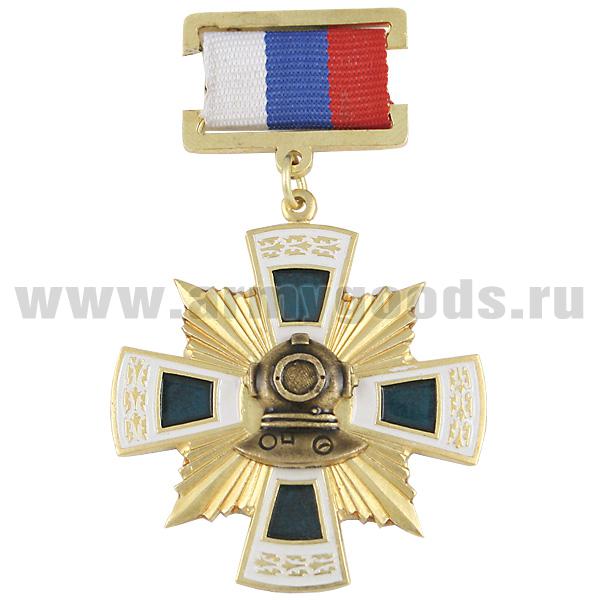 Медаль Водолаз (крест с лучами) (на планке - лента РФ)