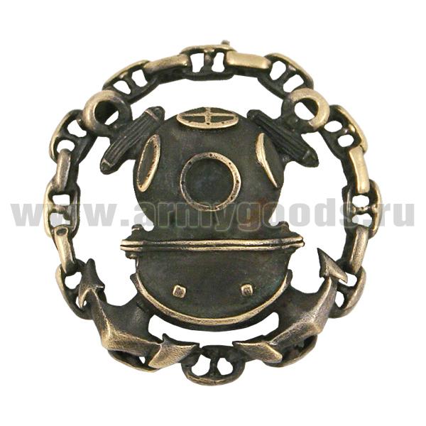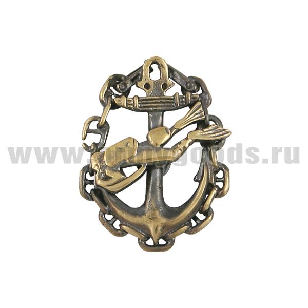 Значок мет. Водолаз на 2 якорях, в цепи (бол. чернен.)