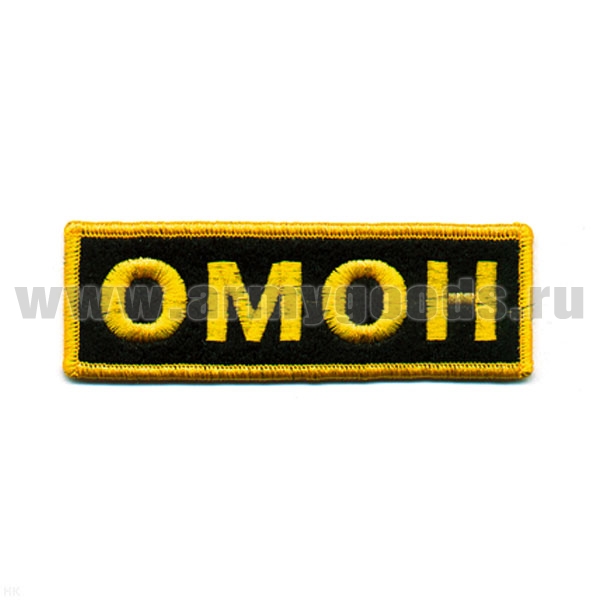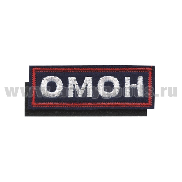 Нашивка на грудь вышит. ОМОН (иссиня-черный фон, красный кант, белые буквы) на липучке