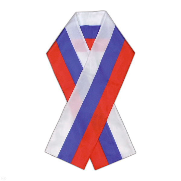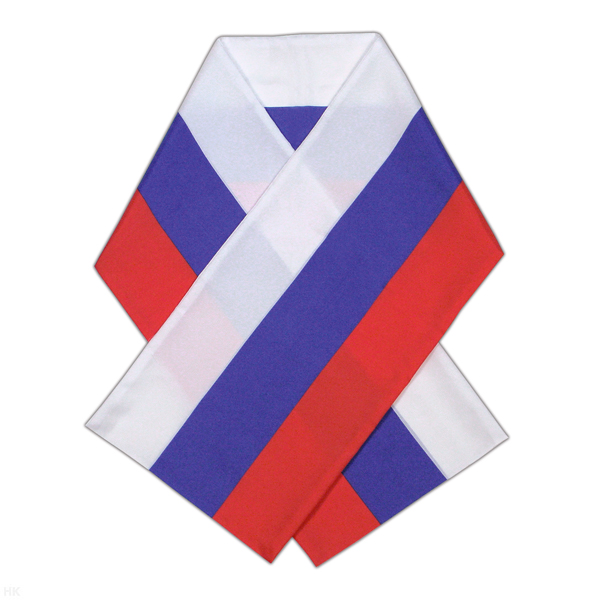 Шарфик сувенирный в виде российского флага (тонкий) синтетика 100% 25х120 см